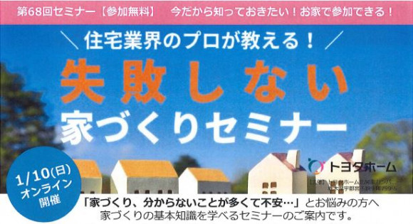 今年 初のイベント☆1/10(日)はオンラインでの開催 失敗しない家づくりセミナーのご案内☆