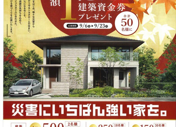 9月キャンペーン抽選で建築資金券プレゼントのお知らせ♪