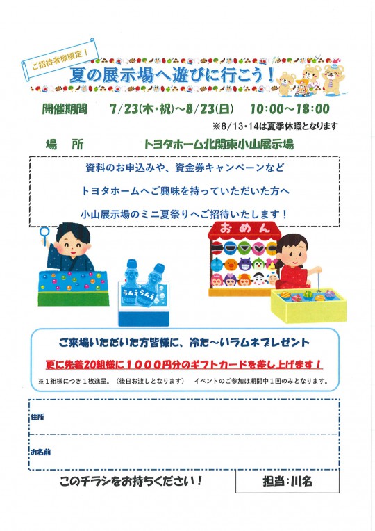 - 資金券キャンペーン&夏の展示場イベント紹介