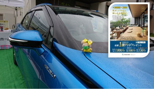 車からお家へ電気☆ ブルー車…MIRAI×チェツくまさん一緒に記念写真☆