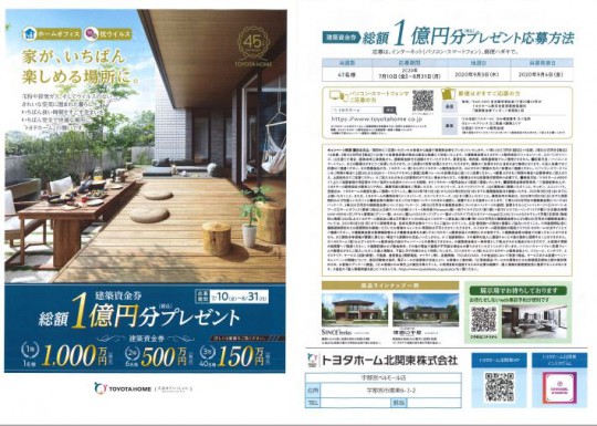 総額1億円分の建築資金券プレゼント!!! キャンペーンのお知らせ♪