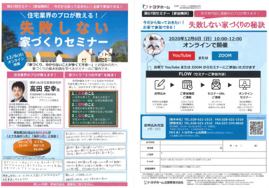 - 12/6(日)オンラインで開催 失敗しない家づくりセミナーのお知らせ♪