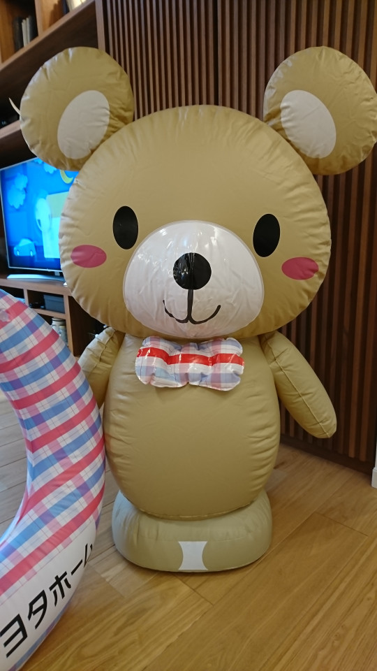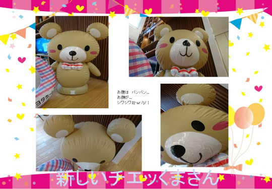 箱から出して…膨らませて…出したばかりで シワシワのチェッくまさんですΣ(・ω・ノ)ノ!