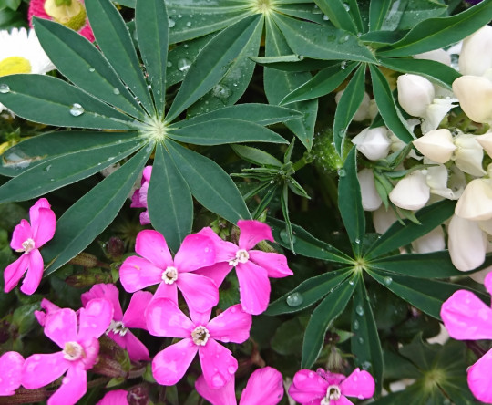置いてある 寄せ植えの中の葉っぱについた雫を発見…あ、なんかいいなぁ。