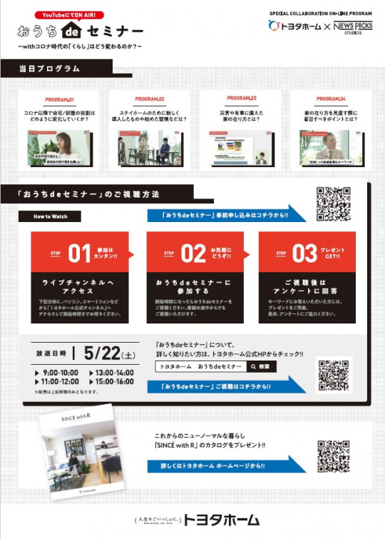 5月22日(土)はおうちdeセミナー!☆YouTubeでON AIR☆withコロナ時代の「くらし」はどう変わるのか?