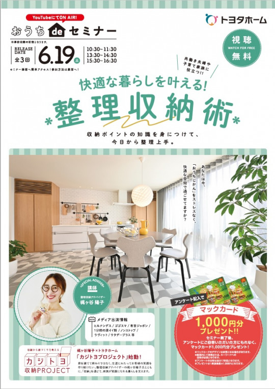 6月19日(土)はおうちdeセミナー快適な暮らしを叶える!☆整理収納術☆