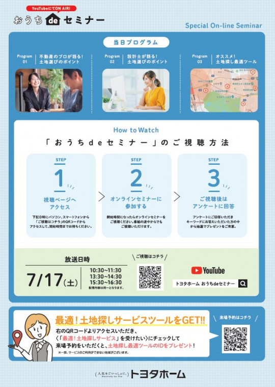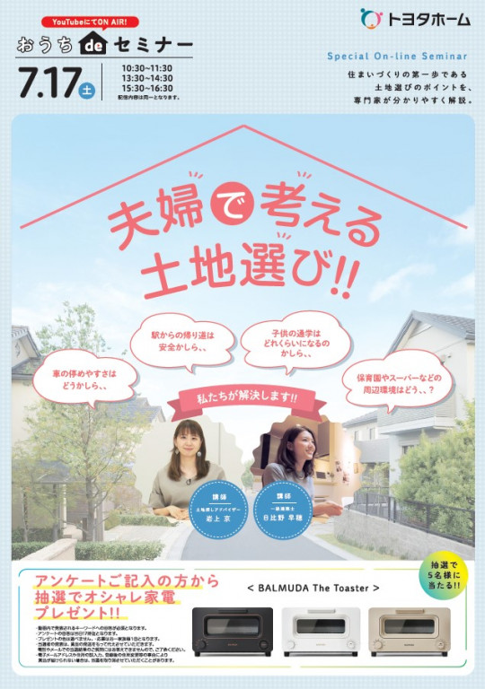7/17は‼YouTubeにてONAIR‼おうちdeセミナー開催!お題は、~夫婦で考える土地選び~