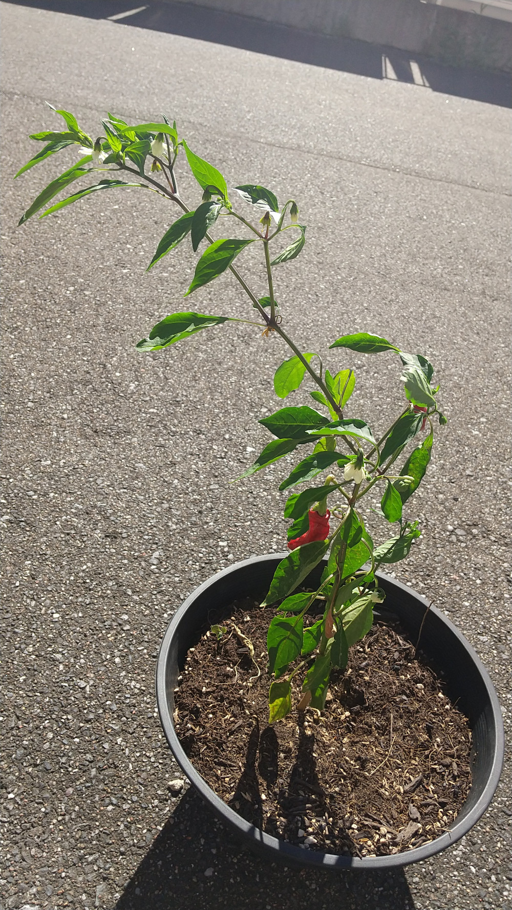 春先に、ふと思い立って玄関先に唐辛子の苗を植えたのですが、めでたく実がなりました~