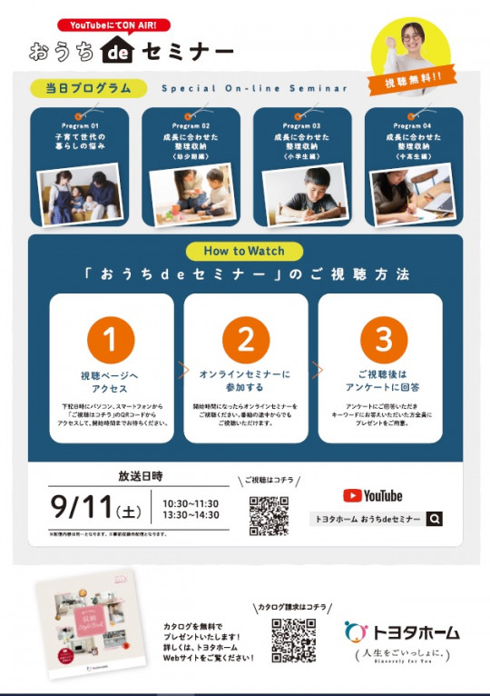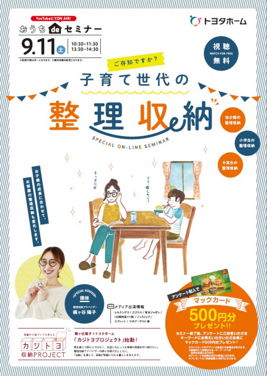 9月11日(土)は、おうちdeセミナー~子育て世代の整理収納♪~
