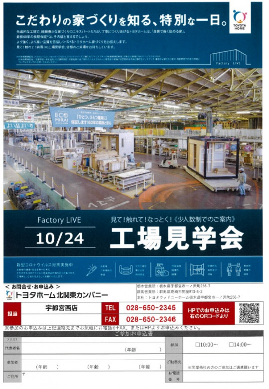 10月24日は工場見学会♪トヨタホームの家づくりをぜひ、ご体感ください!