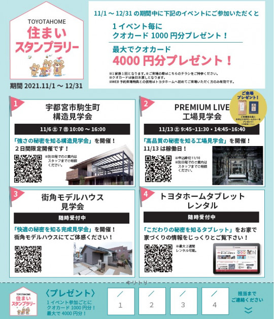 ☆住まいスタンプラリー開催☆ 11/6土・7日は トヨタホームの構造見学会です‼