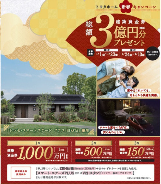 今日は、トヨタホーム新春キャンペーンと1月のお知らせです♪