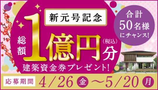 令和記念!総額1億円建築資金券キャンペーン開催!