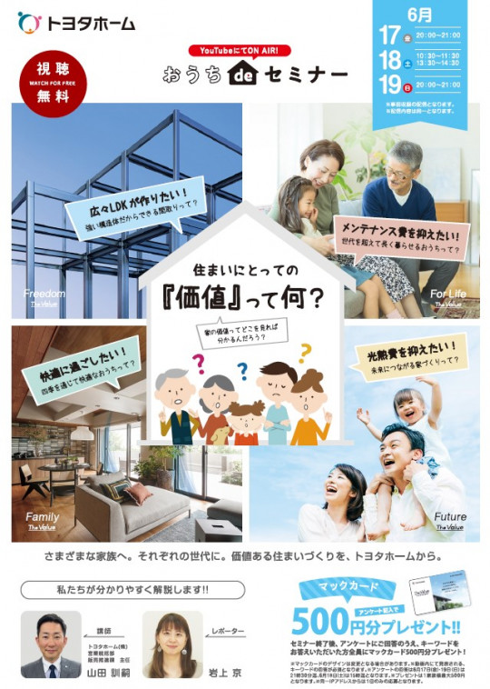 YouTubeにてONAIR!おうちdeセミナー 住まいにとっての『価値』って?を