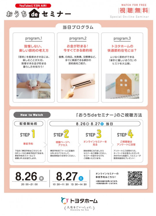 - ~8月のおうちdeセミナーは「かしこい節約術と家計にやさしい家づくり」です♪~