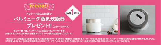 抽選でバルミューダ蒸気炊飯器をプレゼント!!