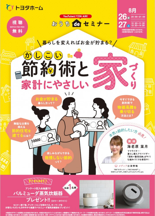 ~8月のおうちdeセミナーは「かしこい節約術と家計にやさしい家づくり」です♪~