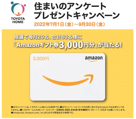 『Amazonギフト券3,000円分』が当たる!キャンペーンです☆