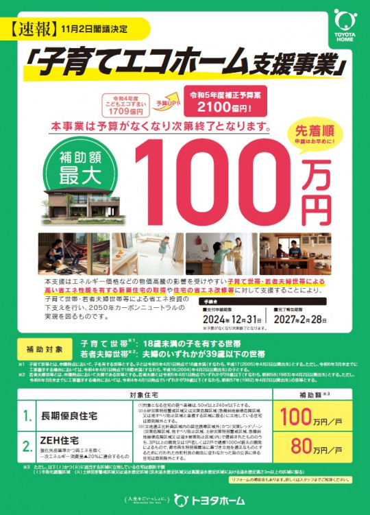 『子育てエコホーム支援事業』 補助額最大 100万円