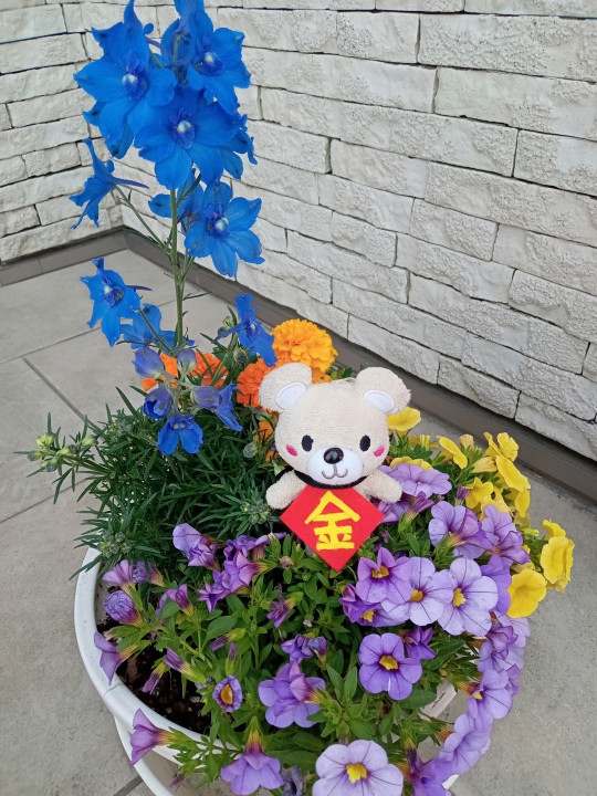 寄せ植え 1本鮮やかな青い花が目を引きます❁