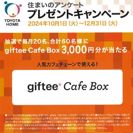 抽選で毎月20名、合計60名様に gitee Cafe Box 3,000円分が当たるキャンペーン