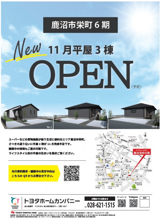 鹿沼市栄町に New平屋3棟 11月オープン予定‼