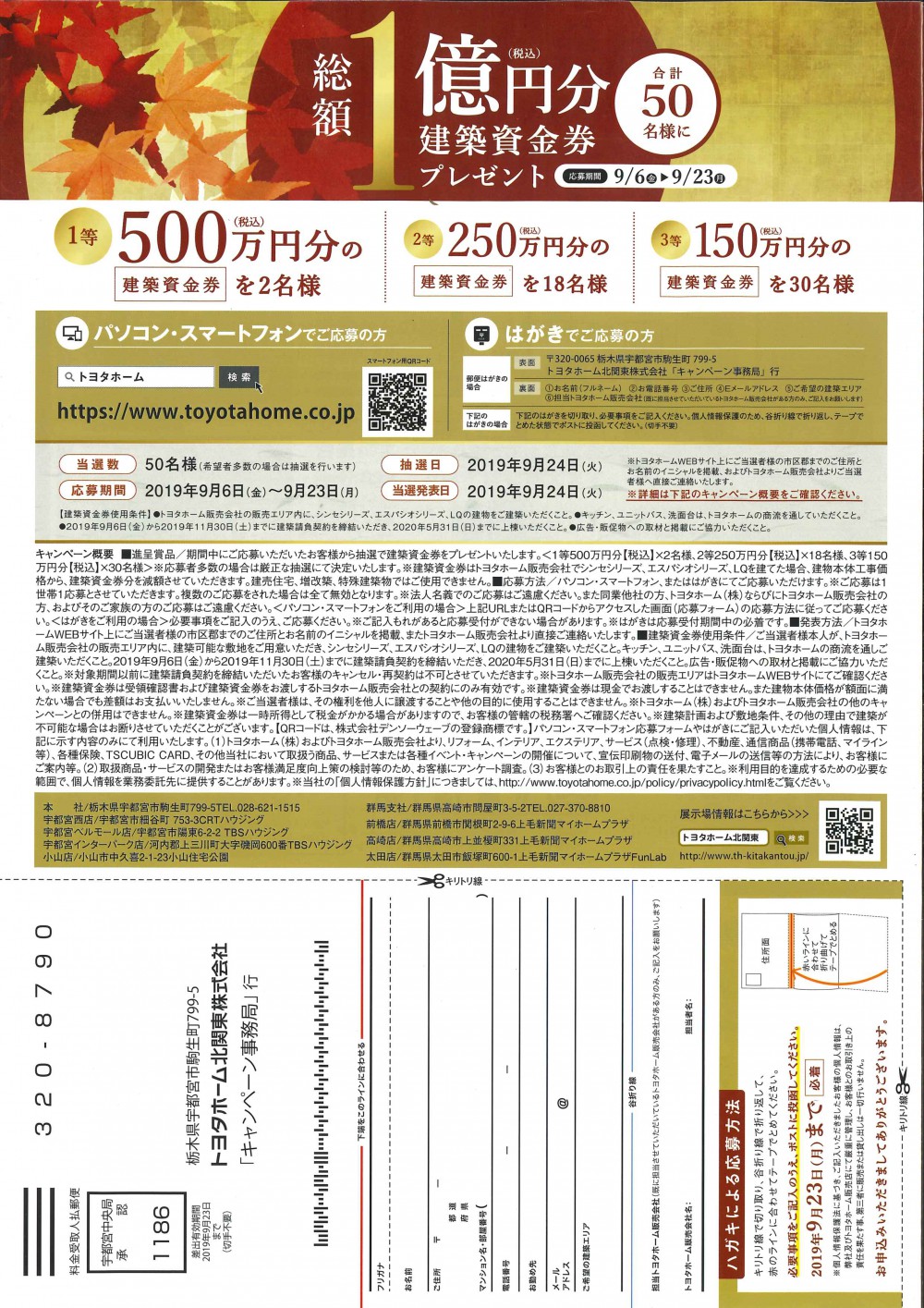 総額1億円の建築資金券を、合計50様にプレゼントいたします。