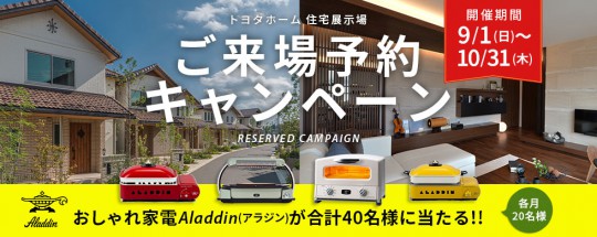 来場予約をして 展示場へ来場いただいたお客様に 各月抽選で「アラジン」家電をプレゼント(^^♪