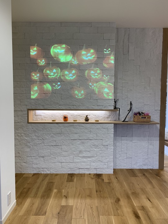 カボチャのプロジェクションマッピングが投影されており