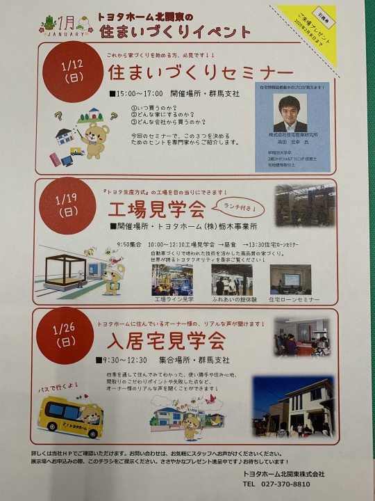 さて、トヨタホーム北関東では1月もイベント開催しています!!
