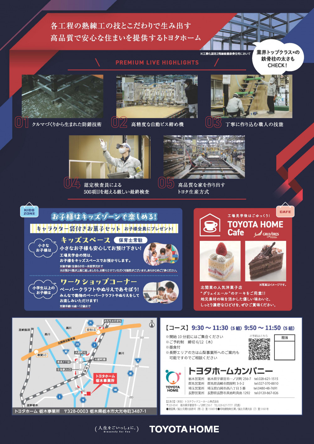 | 場所 | トヨタホーム栃木事業所(栃木県栃木市大光寺町3487-1) (MAP) |