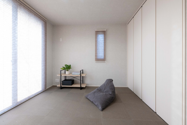 素足でも気持ちの良いテキスタイルフロアのセカンドルーム。床座の落ち着くスペースです。 -