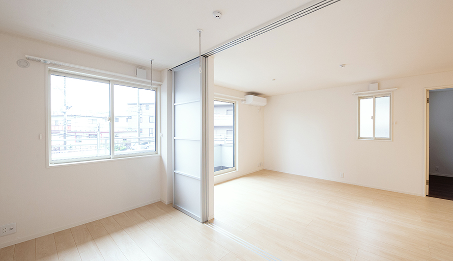 (内観)フローリングやクロスも明るい色合いに。シンプルなデザインだからこそ、空間づくりが自由に楽しめます。