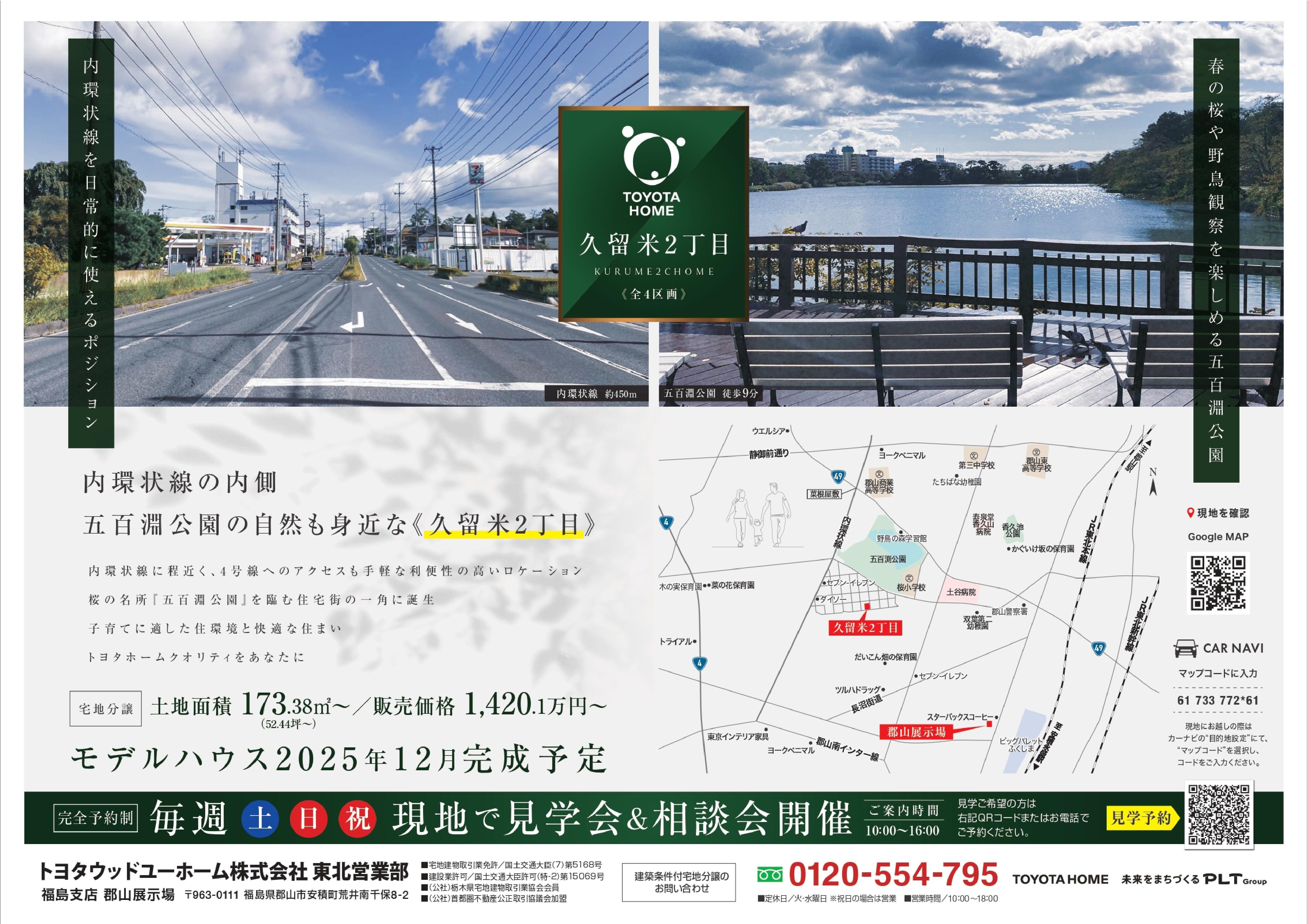 【郡山市久留米】モデルハウス、宅地分譲のご案内