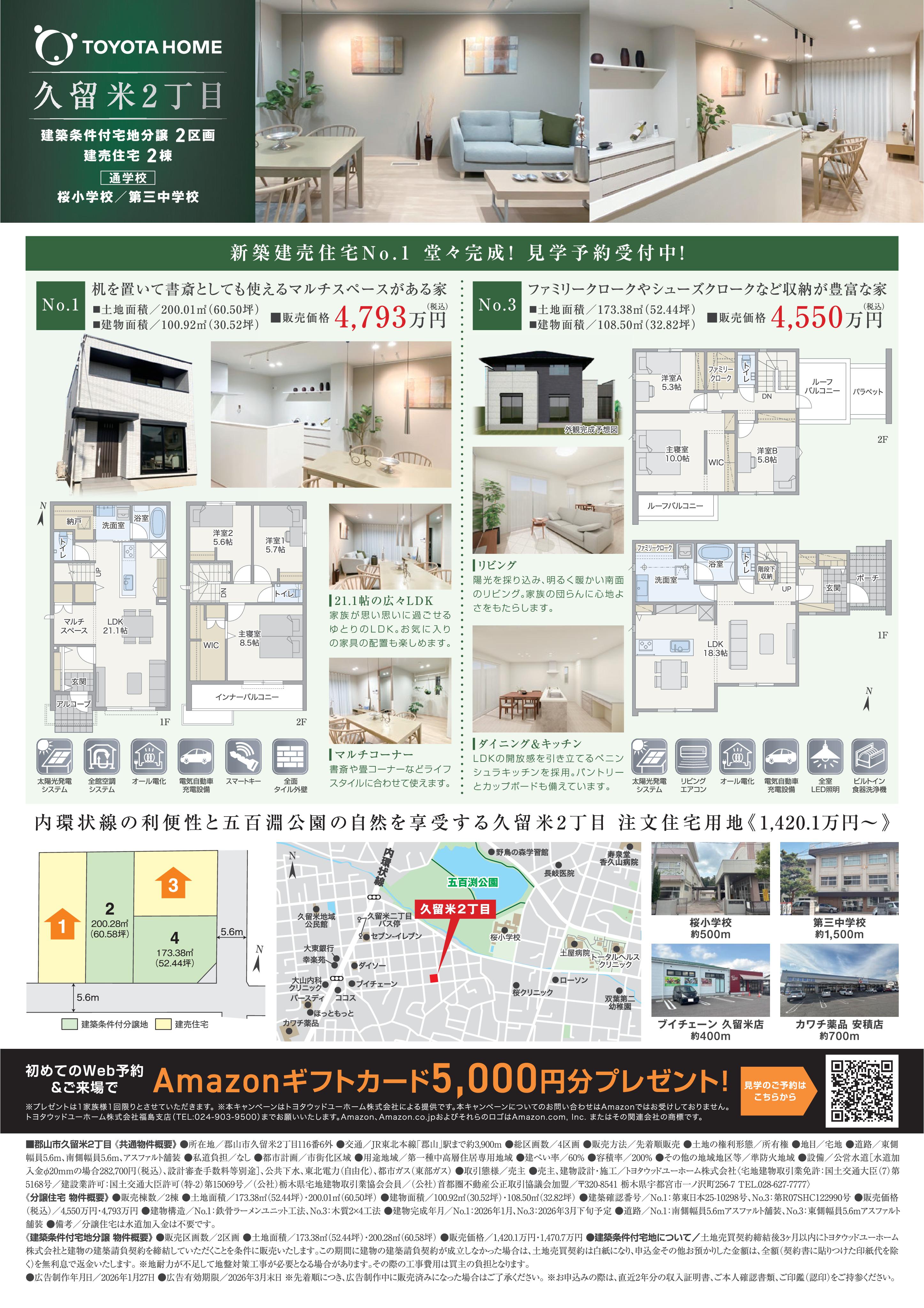 久留米2丁目【建築条件付宅地】2区画販売中!