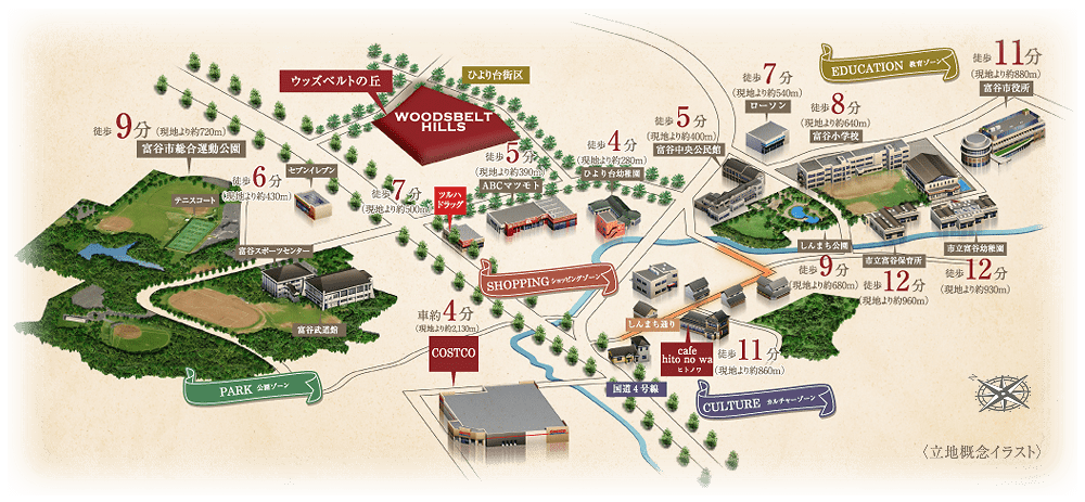 ※掲載の立地概念図は、地図を基に周辺施設の位置関係を表現したもので、実際とは異なります。
